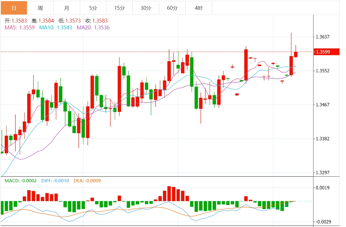 技术上,MACD震荡指标位于其触发线下方并接近零,动能减弱。 而RSI小幅上升至中线50上方。如果汇价继续上涨,那么1.3610-1.3655内的限制性区域可能阻止价格上涨。 不过如果成功上破,则将强化看涨前景,触及1.3770的阻力位,这是11月16日高点所在。