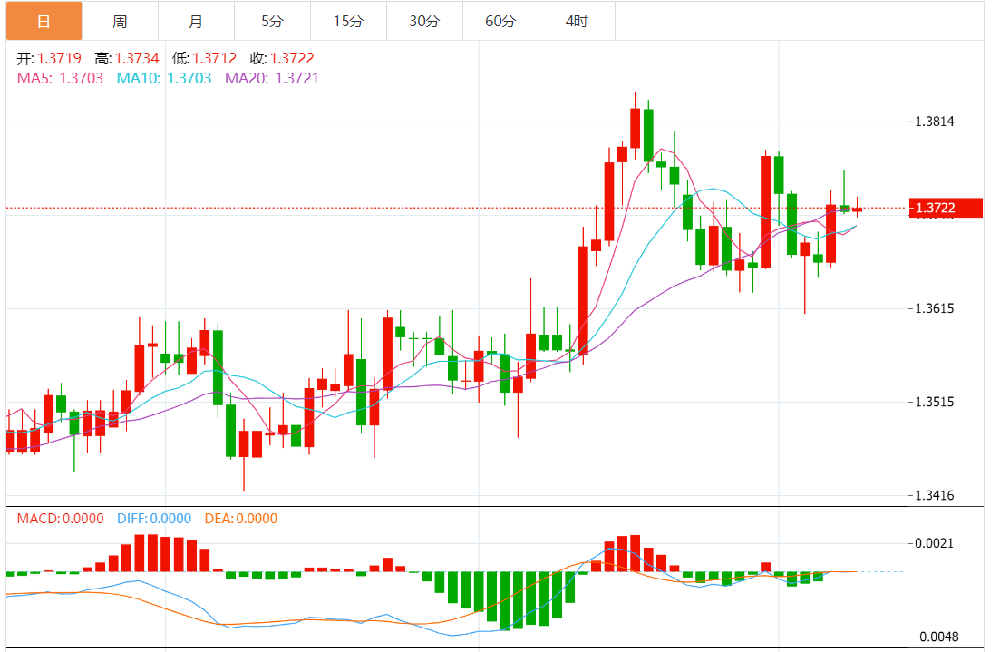1.3700附近的20天指数移动平均线(EMA)继续为美元多头提供支撑。14期相对强弱指数(RSI)在40.00-60.00之间震荡,显示投资者举棋不定。