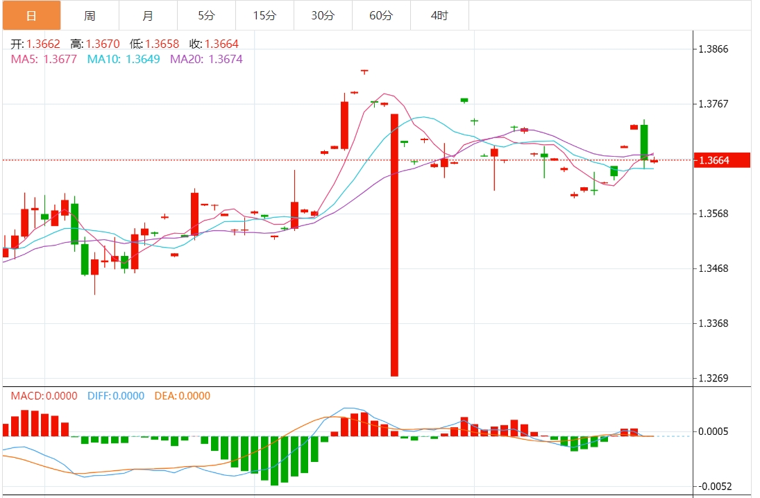 技术上,美元/加元在日线图中呈现下降三角形形态。图表形态的向下倾斜边界自4月16日高点1.3846绘制,而水平支撑位于3月19日高点1.3614。位于1.3684的20天指数移动平均线(EMA)仍是美元多头的主要阻力。如果跌破1.3600附近的5月3日低点,美元/加元将看向1.3547附近的4月9日低点和心理支撑位1.3500。