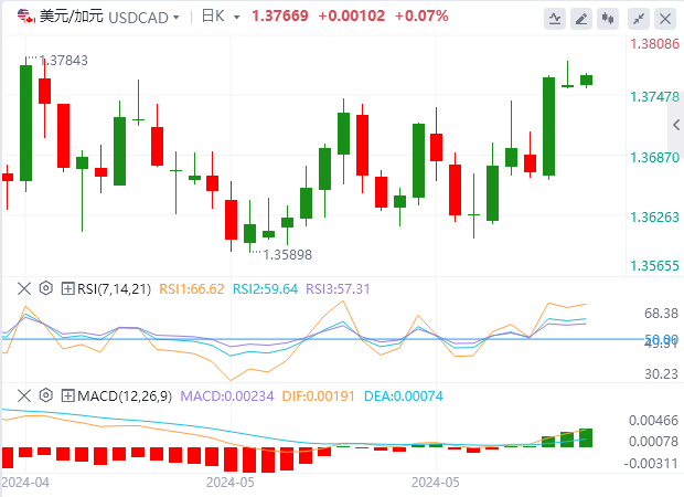 如果美元/加元回落至1.3750以下,它将走向50均线1.3685。