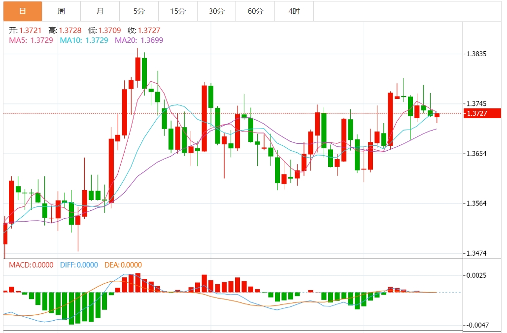 美元/加元一度触及1.3760上方的盘中高点,随后回落至1.3740附近的熟悉中区间。盘中价格走势仍徘徊在1.3760上方重供应区域的低侧,但长期动能仍倾向于看涨,因为该货币对保持在50日指数移动平均线(EMA)1.3673以北。