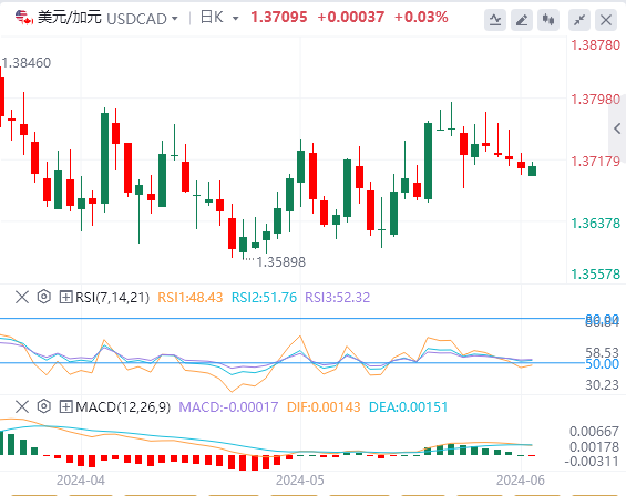 尽管近期缺乏动力,但加元兑美元正在缓慢收窄涨幅。美元/加元在过去连续七个交易日中,除了一个交易日外,其余时间都收平或下跌,周三将稳步进入第八个交易日。该货币对仍保持在50日均线1.3675的高位,并仍被困在200日均线1.3578上方的牛市。