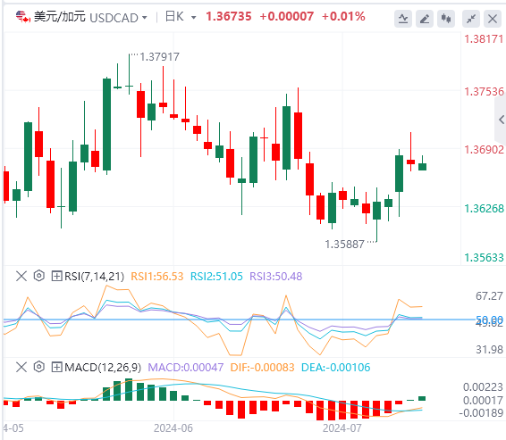 美元/加元尽管贵金属市场反弹,但基本持平。石油市场承压,利空加元。如果美元/加元收于1.3700上方,它将走向阻力位1.3785-1.3800。