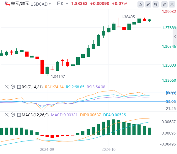 预计美元/加元将进一步反弹,1.3746支撑保持不变,尽管4HMACD中看到了动能损失。目前从1.3418的上涨应瞄准关键阻力区1.3946/76。然而,突破1.3746将表明短期见顶,并将偏见转回下行以进行更深的回调。