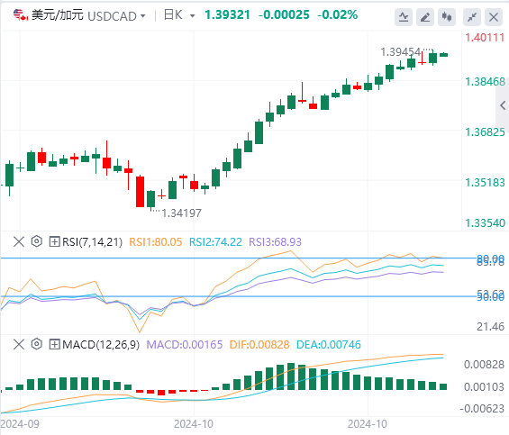 加拿大央行(BOC)决定积极降息50个基点(bps)至3.75%,降息幅度超过预期,加元因此继续承压。市场预计加拿大央行将在12月会议上进一步放宽政策,这也是导致加元走软的原因之一。鸽派的押注也因周四发布的加拿大国内生产总值(GDP)数据疲软而上升。