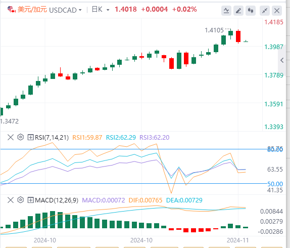 在加元方面,预计加拿大CPI通胀率将从前值的1.6%同比升至10月份的1.9%,而月度CPI估计上涨0.3%。加拿大经济通胀升温的任何迹象都可能提振加元并成为美元/加元的阻力。