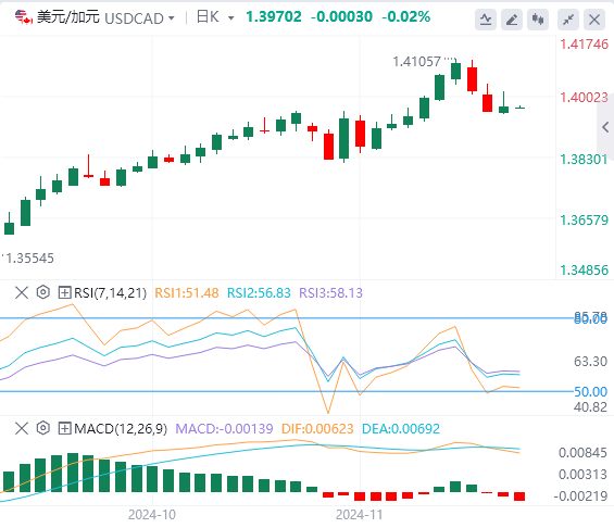 尽管加元看涨,但周三加元兑美元仍下跌了一些,下跌0.1%,中断加元从多年低点附近回升约0.9%两日连涨势头。美元/加元周三处在1.4000关口紧下方,测试了关键心理水平,但价格走势仍维持遇阻关键水平。