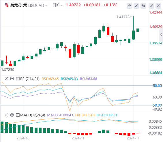 从技术角度看,本周美元/加元从1.3930-1.3925水平支撑位反弹,日在线的正向震荡指标支持美元/加元近期进一步升值的前景。尽管如此,谨慎的做法仍然是等待持续走强回到1.4100大关上方后再重新看涨者押注。届时,现货价格可能会以挑战多年峰值和夺回1.4200整数位为目标。这种动能最终可能会使现货价格升至1.4265中间关口,进而升至2020年4月的高点,即1.4300大关附近。