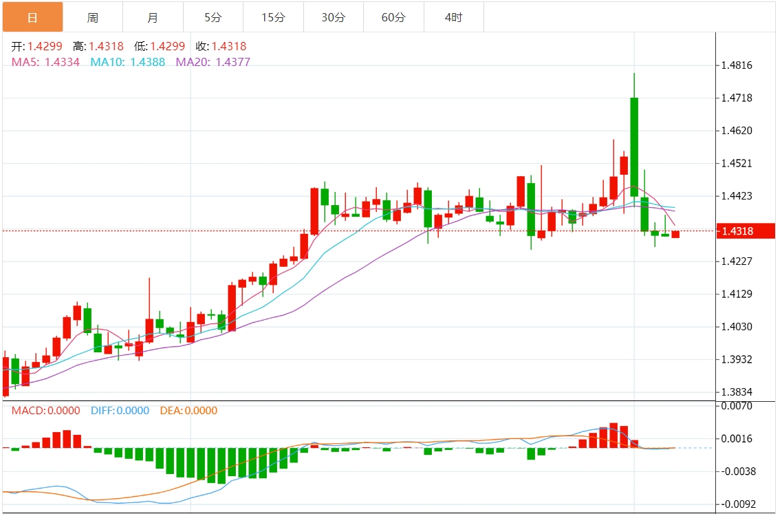 技术上,随着关键数据即将结束本周的交易,加元兑美元再次陷入熟悉的盘整区间。美元/加元仍在1.4300关口徘徊,这是自12月中旬以来保持货币对水平横盘的波动区间的底部。
