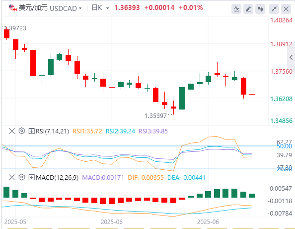 14天相对强弱指数(RSI)仍低于50水平,加剧了看跌压力。此外,美元/加元货币对已跌破9天指数移动平均线(EMA),表明短期势头较弱。