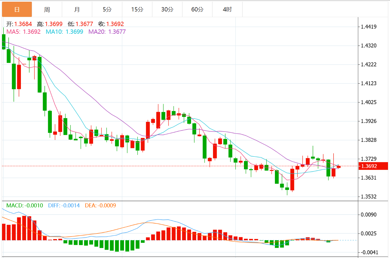 在上行方面,美元/加元可能以九日指数移动均线1.3682为目标。 若突破此水平,将增强短期价格动能,并支持该货币对接近下降通道的上边界,约为1.3780,随后是50日指数移动均线1.3803。 进一步的上涨将改善中期价格动能,并促使该货币对测试自5月13日以来的两个月高点1.4016。