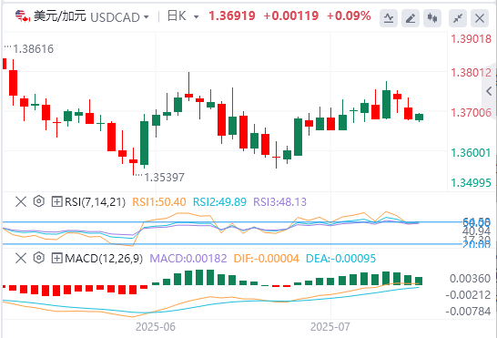 14天相对强弱指数(RSI)位于50水平下方,表明看跌偏见加强。此外,美元/加元货币对已跌破九天指数移动平均线(EMA),表明短期价格动能较弱。