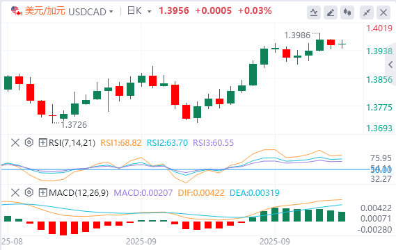 下行方面,美元/加元货币对可能会在1.3925的9日均线找到初步支撑。跌破该水平将削弱短期价格势头,并给该货币对带来下行压力,使其在50日均线1.3828附近区域徘徊。