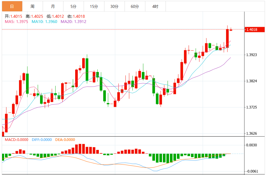 技术上,美元/加元延续了近期的反弹,目前交易接近1.4025,突破了关键的1.4000水平。 这一走势标志着日内结构的决定性转变,价格已突破50日和200日指数移动平均线(EMA),分别聚集在1.3850和1.3870附近。 该区域已从阻力转变为潜在支撑,表明市场情绪向美元转变。