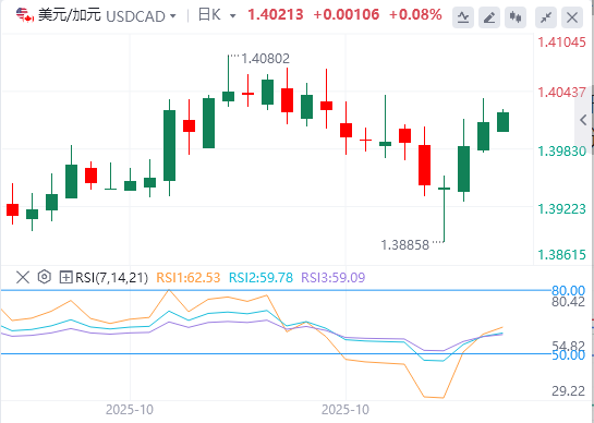 从好的方面来看,美元/加元货币对可能会瞄准矩形的上限1.4060附近,然后是10月14日触及的七个月高点1.4079。突破该汇合阻力区将导致该货币对测试1.4100的心理水平。