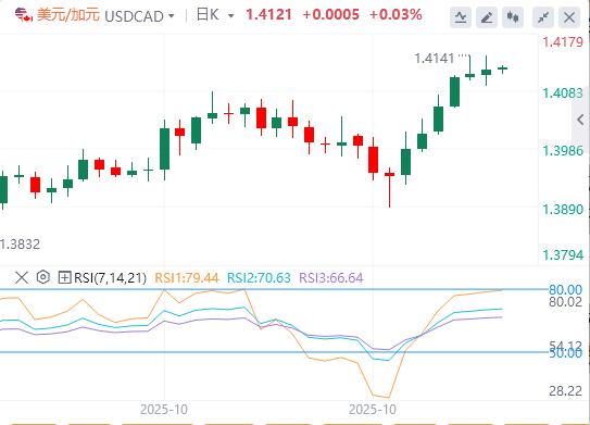 交易员正在关注该货币对能否守住 1.41 区域上方,以确认持续到11月中旬的看涨势头。