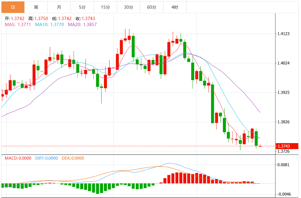 从技术面来看,美元兑加元短线结构仍偏谨慎,但整体仍运行在下行的20日指数移动均线下方,反映反弹过程中上方抛压较为明显。20日均线持续下行,显示短期供给压力尚未消退。