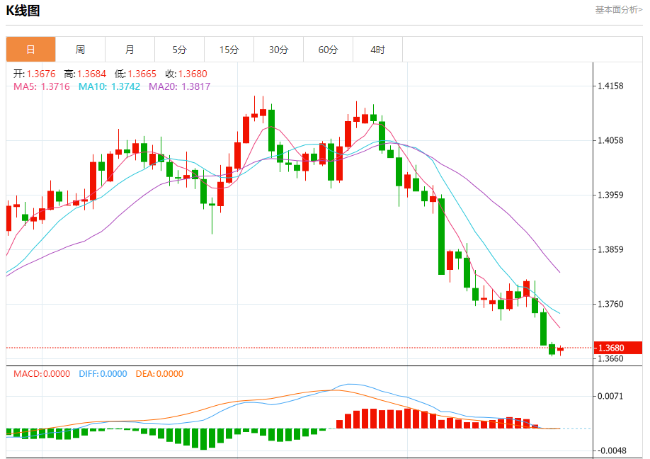 强支撑:1.3640—1.3650(日线5日均线+技术支撑)。为短线空头核心防守位;失守则进一步考验1.3600—1.3610。