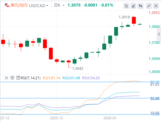 从1.4134高点到1.3646低点测量,斐波那契回撤作为上方障碍,50%回撤位1.3890和61.8%位位在1.3948收获反弹。日内收盘价若收于1.3948,可能暴露78.6%回撤位1.4030,反复跌破1.3890则将使该货币对在阻力下盘整。总体来看,动能有所改善,但下降的移动平均线和聚集的斐波那契水平限制了上涨,多头需要果断突破这些上方回撤才能扩大涨幅。