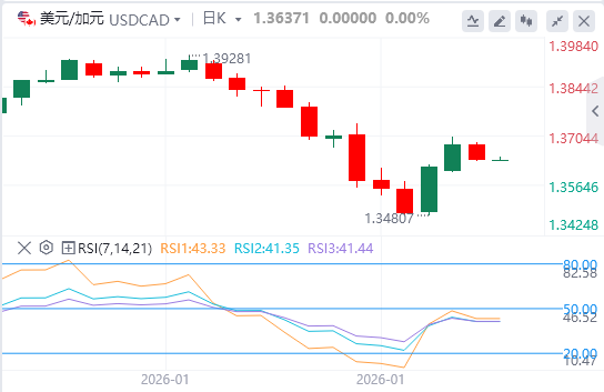 约1.39的200日均线代表下一个关键阻力位,需持续突破该门槛,才能暗示近期下跌趋势出现更实质性的反转。下行方面,支撑位于近期低点1.3490-1.3500附近,跌破则可通往1.3400。相对强弱指数(RSI)已从超卖区反弹,徘徊在40多中段,表明货币对处于中性状态,有任意方向的波动空间。