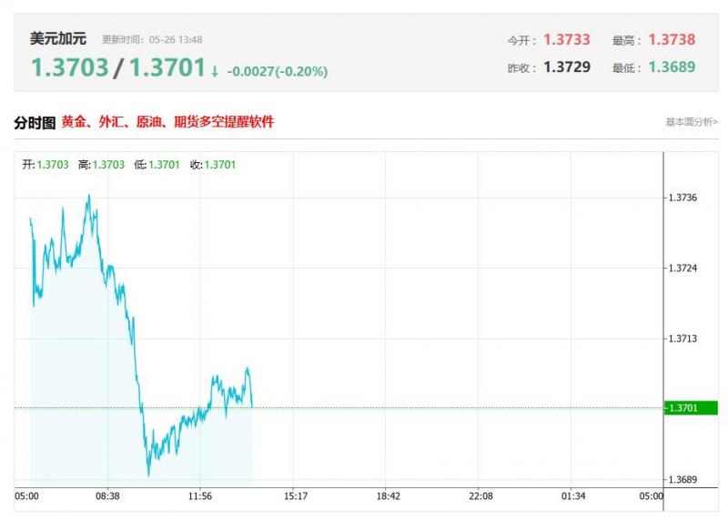 5月26日,周一亚市盘中,美元/加元延长了过去一周左右的下跌趋势,并在周一的亚洲时段吸引了一些后续抛售。下跌势头将现货价格拖至1.3700整数下方,至2024年10月以来的最低水平,并受到普遍走软的美元(UD)的推动。 由于担心美国财政状况恶化和美联储(Fd)的鸽派预期,追踪美元兑一篮子货币的美元指数(DXY)跌至近一