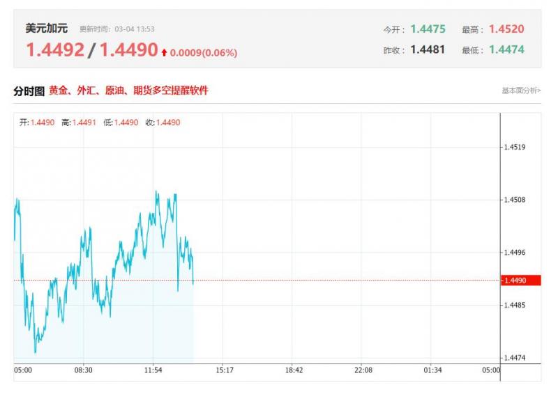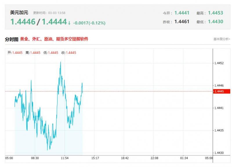 美元/加元连续第二个交易日继续下跌,周三欧洲早盘徘徊在1.4400附近。由于对经济增长放缓和新征收关税影响的担忧日益加剧,美元(UD)仍然承压。特朗普总统对加拿大和墨西哥商品征收25%的关税于周二生效,同时将中国进口商品的关税提高至20%。 美国商务部长霍华德·卢特尼克(HowardLutnick)在接受福克斯新闻(FoxNw)