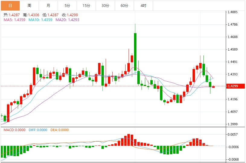 3月6日,周四欧市初盘,美元/加元连续第三天连续下跌,交投于1.4330附近。日线图上的技术分析表明,该货币对仍处于下降通道模式内,强化了看跌前景。 14天相对强弱指数(RI)略低于50,表明看跌情绪。持续下跌可能会进一步验证下行偏见。此外,美元/加元货币对仍低于9天指数移动平均线(A),表明短期价格势头较弱。