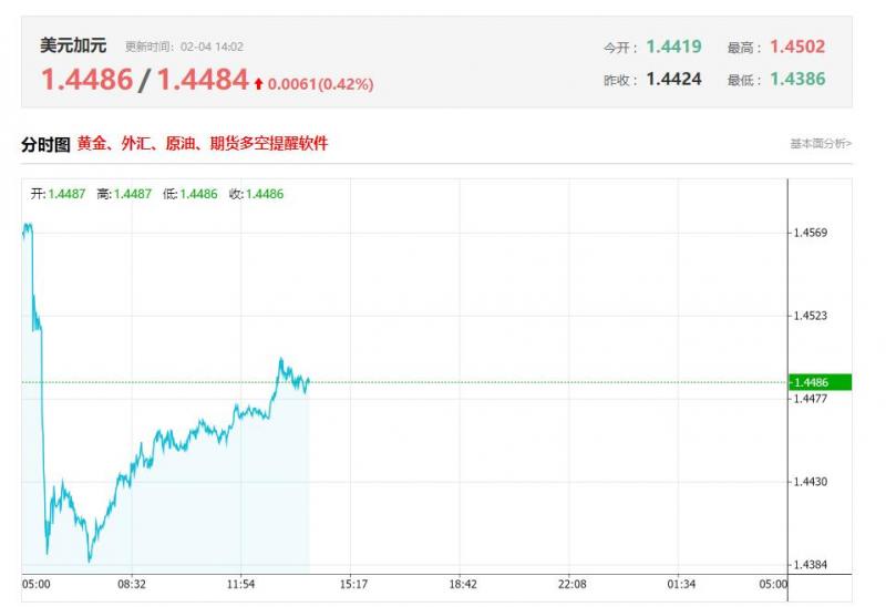 2月4日,周二欧市初盘,美元/加元吸引了一些逢低买盘,在1.4385区域附近,并且目前似乎已经停止了前一日从2003年4月以来的最高水平急剧回撤的滑坡。多种因素推动了这一上涨,并将现货价格推回到1.4500心理关口附近。 周二,原油价格连续第二天吸引卖家,并跌至一个多月低点,这削弱了与商品挂钩的加元,并在美元需求