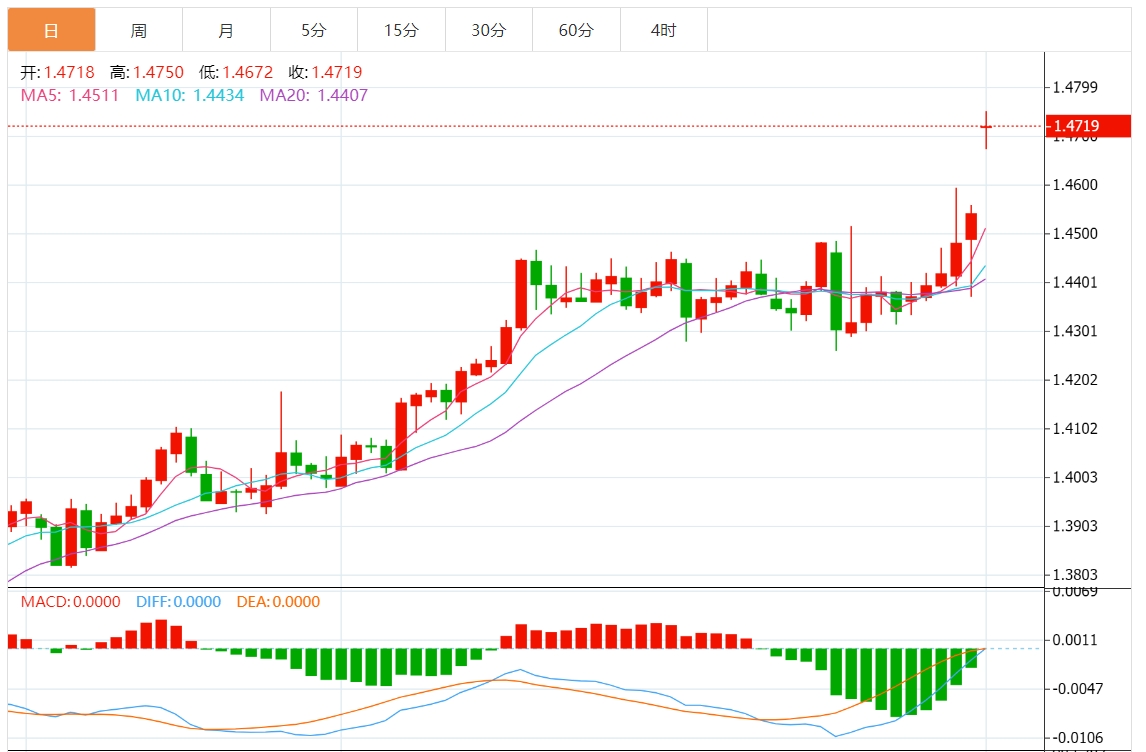 美元兑加元今日汇率最高1.4729,最低1.4726,涨跌0.0186,涨跌幅1.28%。 市场基本面分析 当地时间2月1日,美国政府宣布,对来自加拿大和墨西哥的进口商品征收25%的关税。美国总统特朗普当天签署关税令,对来自加拿大和墨西哥的进口产品征收25%的额外关税,对来自加拿大的能源资源征收10%关税。关税暂定4日