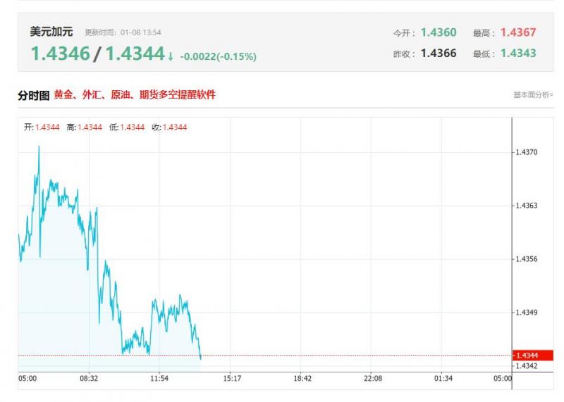 美元兑加元今日汇率最高1.4367,最低1.4344,涨跌-0.0022,涨跌幅-0.15%。 市场基本面分析 美元/加元在周三亚洲早盘时段在1.4360附近小幅上涨。市场消化了加拿大总理贾斯汀·特鲁多(JutinTrudau)将辞职的公告,并等待有关预期美国贸易关税严重性的新催化剂。周三晚些时候,联邦公开市场委员会(FOC)的