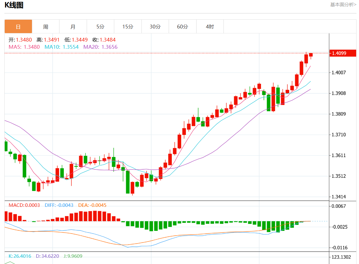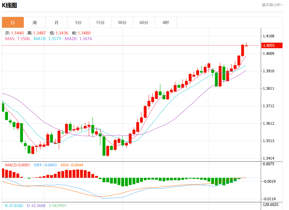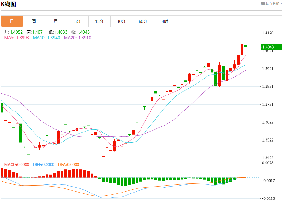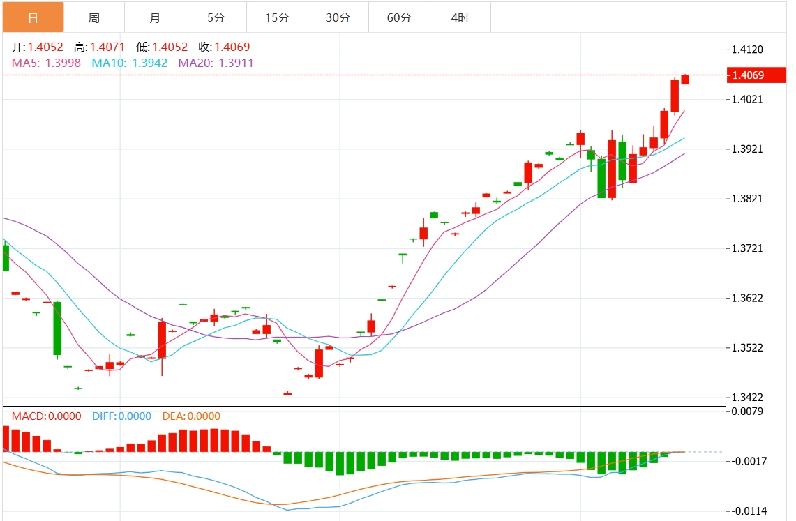 美元/加元基本面综述: 周四美国生产者价格指数(I)通胀数据小幅上升,美元进一步走高,美元/加元突破1.4000关口上涨至四年半以来的最高水平。 截至10月份的年度美国核心I通胀率同比上升3.1%,高于预期的3.0%,并且比上一期修正后的2.9%(最初公布的2.8%)进一步上升。加拿大本周仍然缺席经济日历,明显