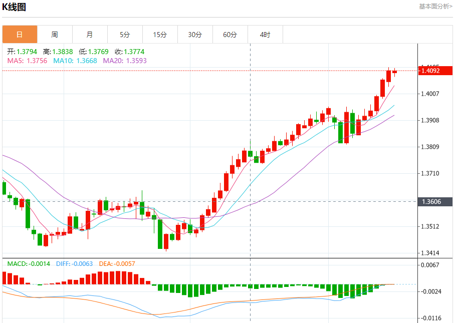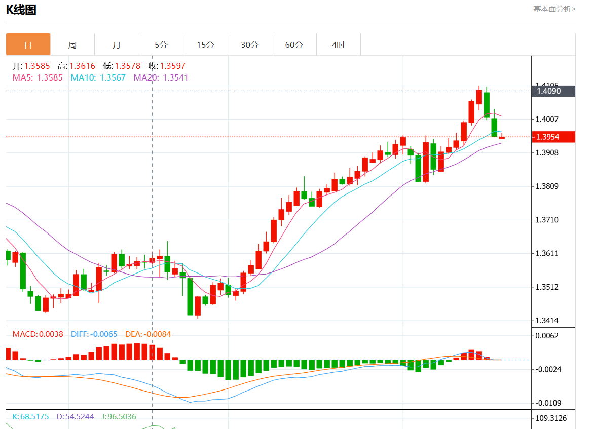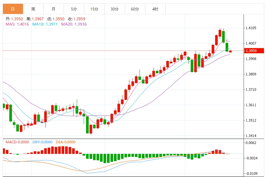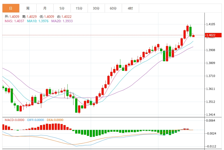 11月21日,周四亚市早盘,美元/加元徘徊于1.3970附近。 加元重回跌势,周三加元兑美元回落0.1%。由于经济数据对美元/加元的影响仍然较小,加元兑避险美元周三中断看涨趋势。 加拿大本周的消费者物价指数(CI)通胀数据有所上升,但这一影响很快就过去了,美元/加元在上周触及1.4100以上的54个月高点后,目前停留在多年