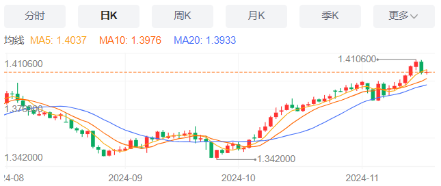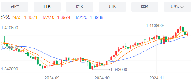 美元兑加元今日汇率最高1.4029,最低1.4009,涨跌0.0008,涨跌幅0.06%。 市场基本面分析 加拿大将在周二发布10月CI数据。若数据显示通胀压力有所增强,可能意味着加拿大经济中的通胀压力有所韧性。这样的数据发布可能会为加元提供一些支持,因为加拿大央行的鸽派立场可能会有所缓解。此外,投资者需关注