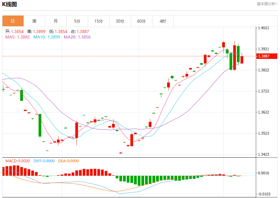 周四盘中,美元/加元报1.4008,涨幅0.08% 今日分析:看涨,当1.3967为支撑位。 技术点评:RI技术指标超过50。ACD技术指标处在其信号线之上看多。此外,价位高于其20天及50天移动平均线(分别位于1.3976和1.3960)。 支撑位:1.41071.40851.4063 阻力位:1.39821.39671.3931 (亚汇网编