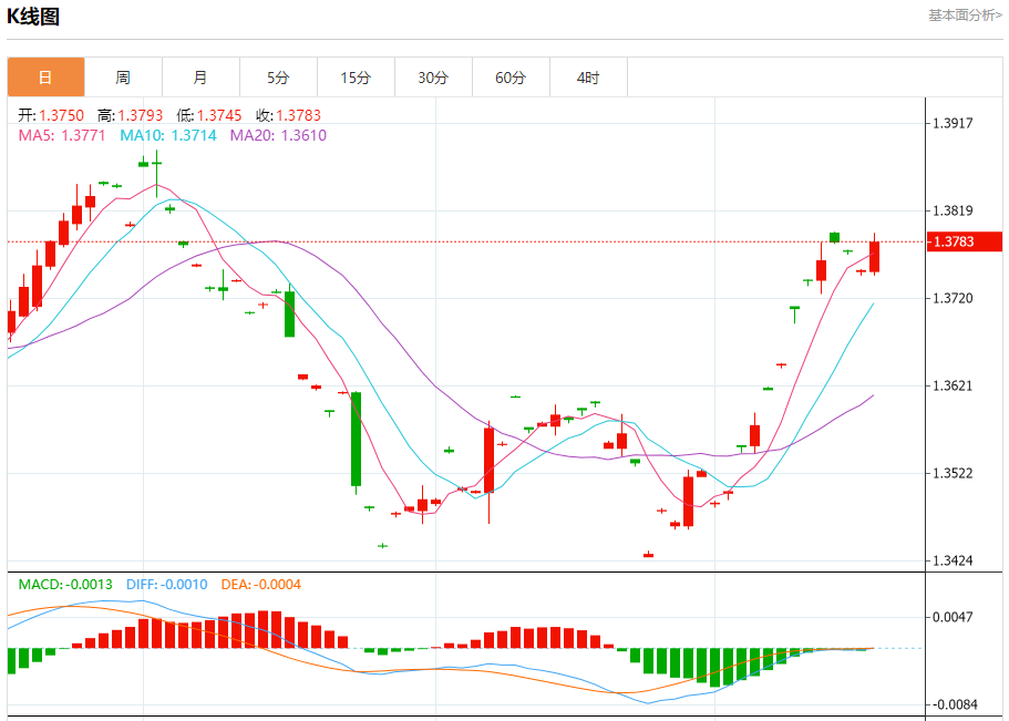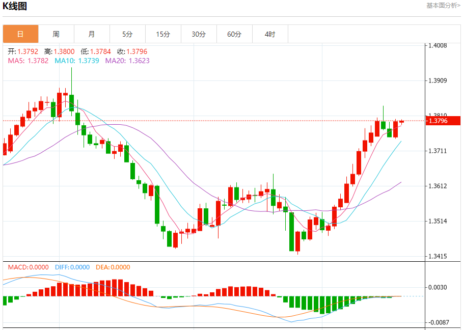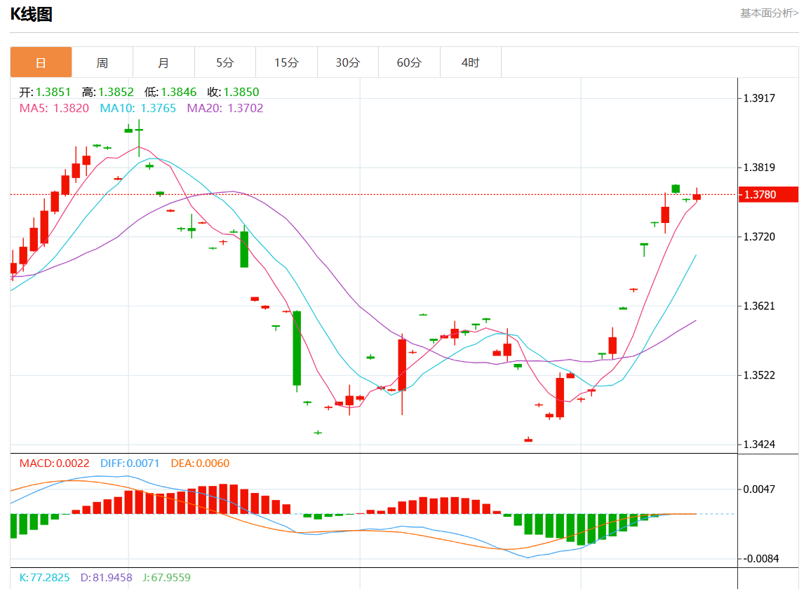 周五亚盘,美元/加元货币对温和走强至1.3795附近。在美国经济数据走强的情况下,美元进一步上行为货币对提供了一些支持。周五晚些时候将发布美国营建许可和房屋开工率。此外,美国联邦储备委员会官员拉斐尔-博斯蒂克(RahalBotic)、尼尔-卡什卡里(NlKahkari)和克里斯托弗-沃勒(ChritohrWallr)也将发表演说。 市场