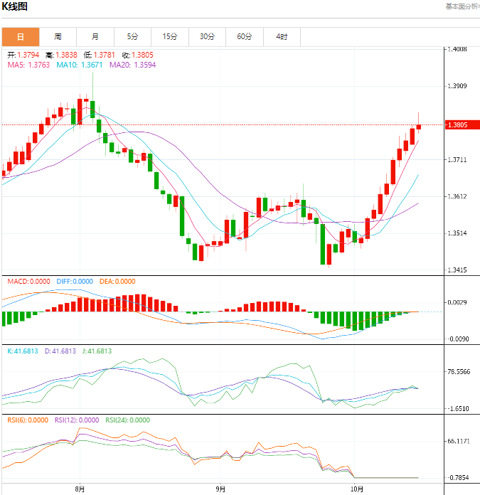 美元/加元基本面综述: 路透调查的29位经济学家中有19位预计加拿大央行将在10月23日将降息50个基点至3.75%,另有10位经济学家预测降息25个基点。 29位经济学家中有10位预计加拿大央行将在2024年底前将利率下调至3.50%,9位预计为3.75%,9位预计为3.25%,1位预计为4.00%。 美元/加元技术面分析: