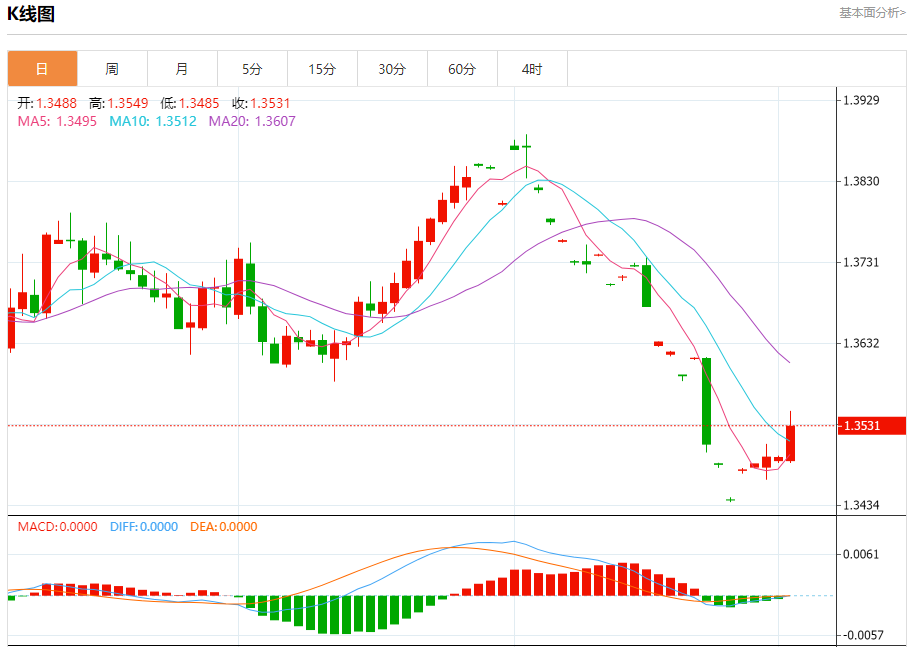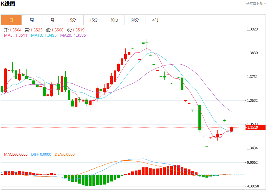 周四盘中,美元/加元报1.3511,涨幅0.04%. 今日分析:在1.3530之下,看跌,目标价位为1.3490,然后为1.3470。 技术点评:只要1.3530阻力位不被突破,向下跌破1.3490位置的风险很高。 支撑位:1.35651.35451.3530 阻力位:1.34901.34701.3450 (亚汇网编辑:静香)
