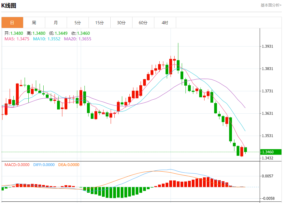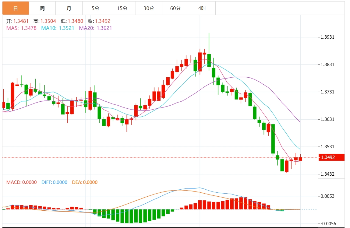 周四盘中,美元/加元报1.3455,跌幅0.18%. 今日分析:在1.3485之下,看跌,目标价位为1.3440,然后为1.3425。 技术点评:RI技术指标向下运行。 支撑位:1.35151.35001.3485 阻力位:1.34401.34251.3410 (亚汇网编辑:静香)