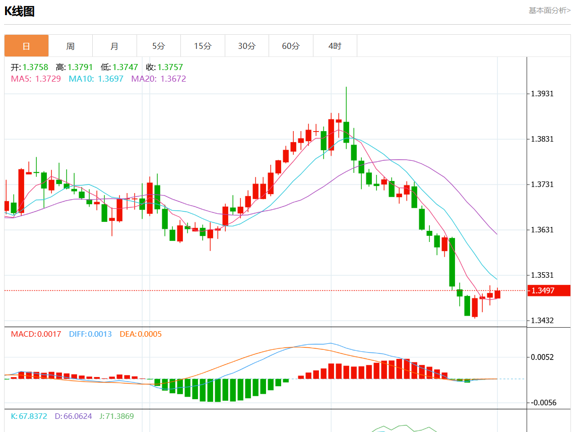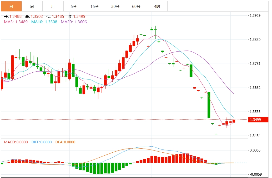 周一欧盘,美元/加元收复近期跌幅,交投于1.3500附近。原油价格下跌后,与大宗商品挂钩的加元(CAD)走势疲软,导致美元/加元上扬。加拿大是美国最大的石油出口国。 西德州中质油(WTI)价格连续第二个交易日下跌,发稿时WTI油价交投于72.50美元。这一下跌可能与石油输出国组织及其盟国(欧佩克+)计划在下一季增产有关