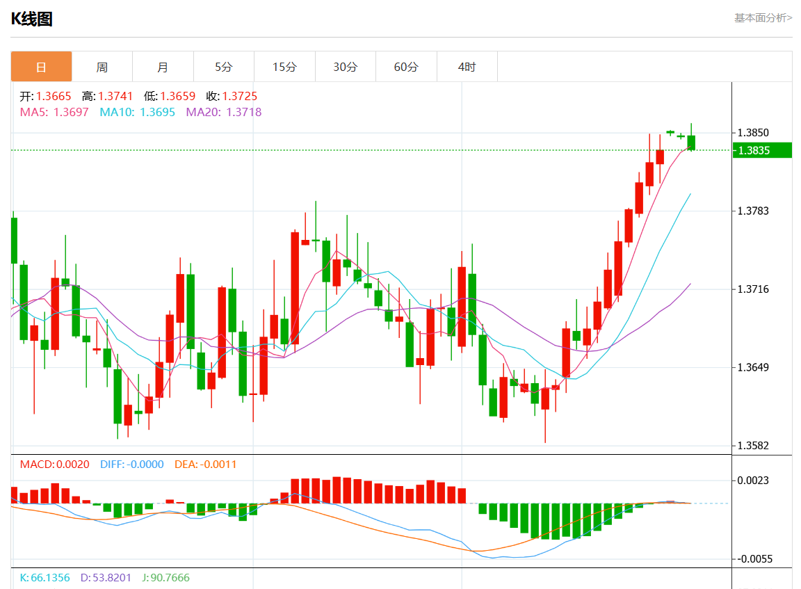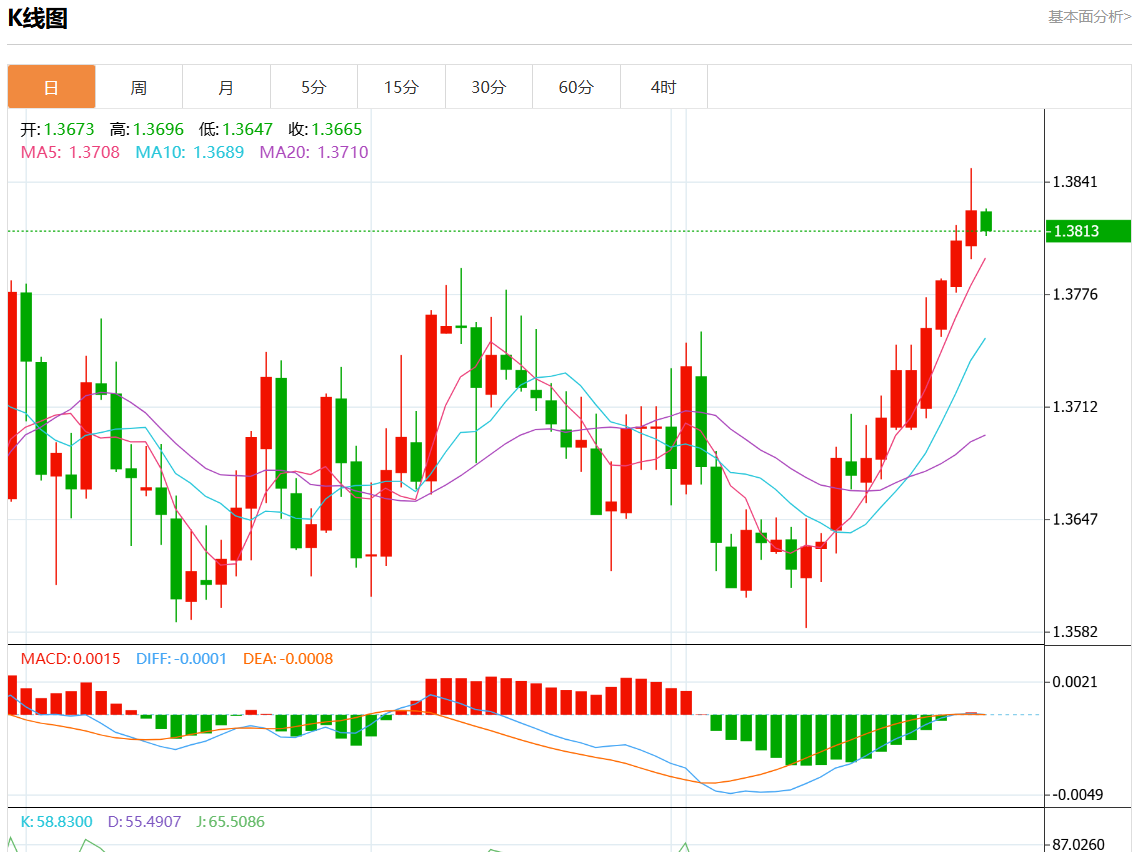 美元/加元技术分析 临时顶部应该在1.3848,目前回落。美元/加元的盘中偏见因盘整而变为中性。回撤的下行空间应该被554小时A(目前为1.3745)所控制,以带来另一次反弹。从好的方面来看,决定性地突破1.3845高点将从1.3176恢复整体反弹。下一个目标是61.8%的预测,即1.3176至1.3845,从1.3588到1.4025。 从更大的角度来