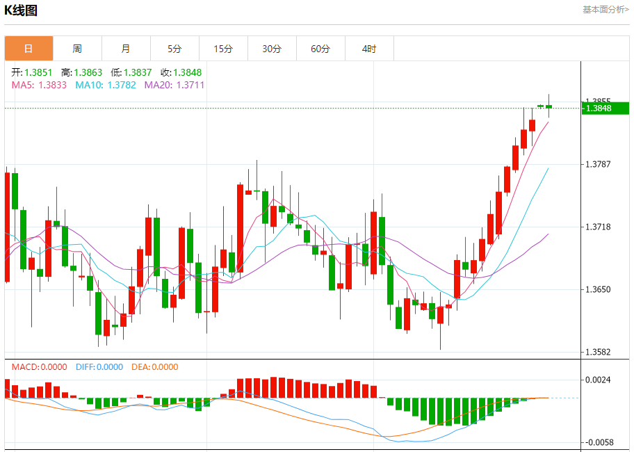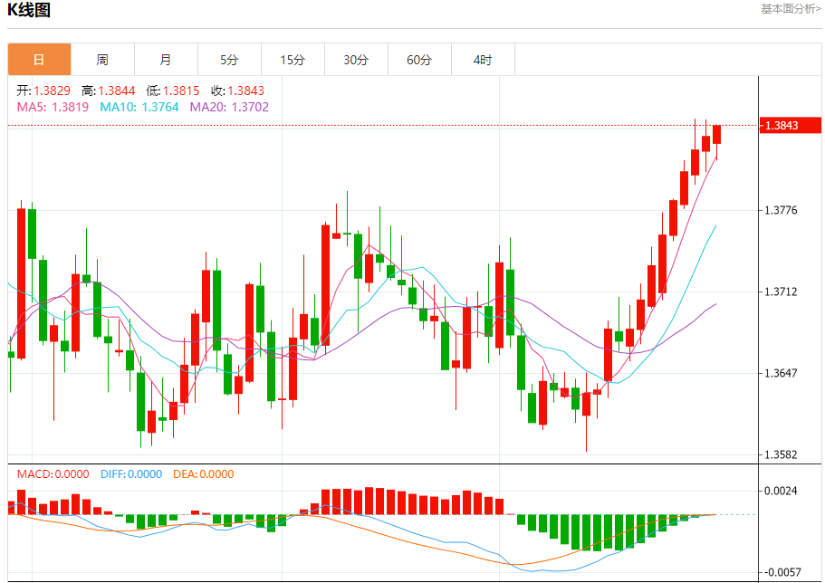 周二盘中,美元/加元报1.3847,跌幅0.03%. 今日分析:在1.3835之上,看涨,目标价位为1.3865,然后为1.3880。 技术点评:超短线(当日内)技术指标运行趋势复杂,应谨慎操作。 支撑位:1.39001.38801.3865 阻力位:1.38351.38151.3795 (亚汇网编辑:静香)