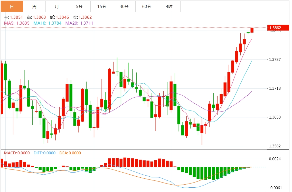 周三亚盘,美元/加元在周一从八个月高点1.3865回落后扩大失地,周三盘中在1.3840附近。原油价格的回升支撑了与大宗商品挂钩的加元(CAD)兑美元(UD),因为加拿大是美国最大的原油出口国。 中东地缘政治紧张局势加剧油价回升 截至发稿时,西德克萨斯中质原油(WTI)价格约为每桶75.40美元。WTI原油从周二创下的八周低