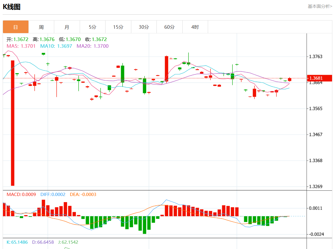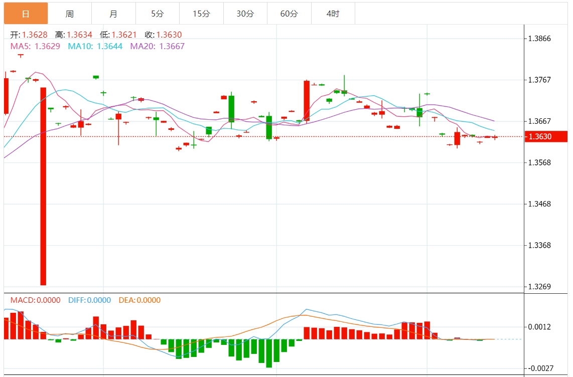 周一盘中,美元/加元报1.3656,涨幅0.15%. 今日分析:在1.3630之上,看涨,目标价位为1.3665,然后为1.3685。 技术点评:RI技术指标缺乏下降动能。 支撑位:1.37001.36851.3665 阻力位:1.36301.36101.3590 (亚汇网编辑:静香)