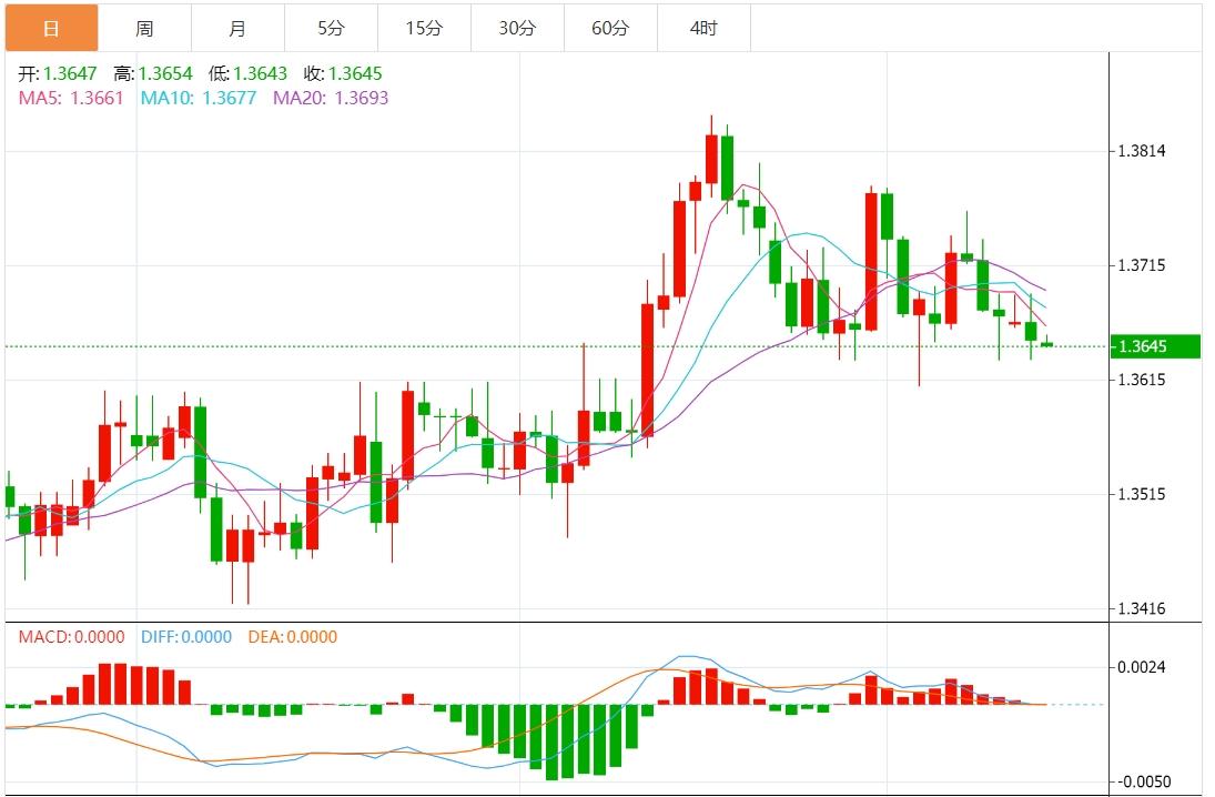 周三亚盘,美元/加元走低,现报1.3645附近,美国CI数据前,美元指数回调。 市场基本面分析 加元(CAD)周二涨跌互现,此前更广泛的市场关注美国最新一轮通胀数据,投资者继续寻找美联储降息的迹象。加元兑美元保持近期涨势,但仍陷入技术盘整。 加拿大3月批发销售环比降幅略好于预期,但本周来自加拿大的严格低级