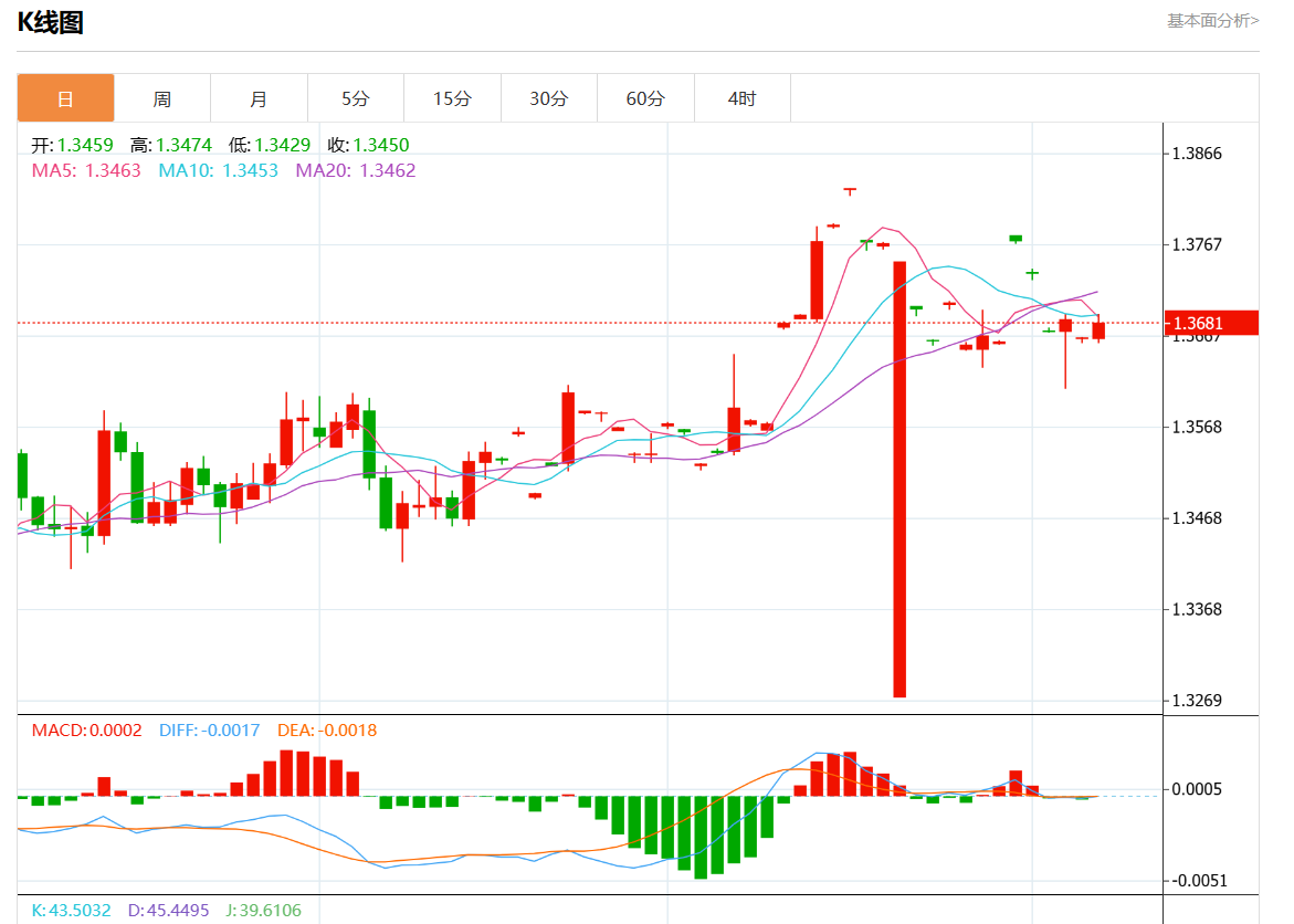 周四盘中,美元/加元报1.3734,涨幅0.011%。 今日分析:在1.3745之下,看跌,目标价位为1.3710,然后为1.3690。 技术点评:RI技术指标运行趋势复杂,倾向于下跌。 支撑位:1.37751.37601.3745 阻力位:1.37101.36901.3670 (亚汇网编辑:静香)
