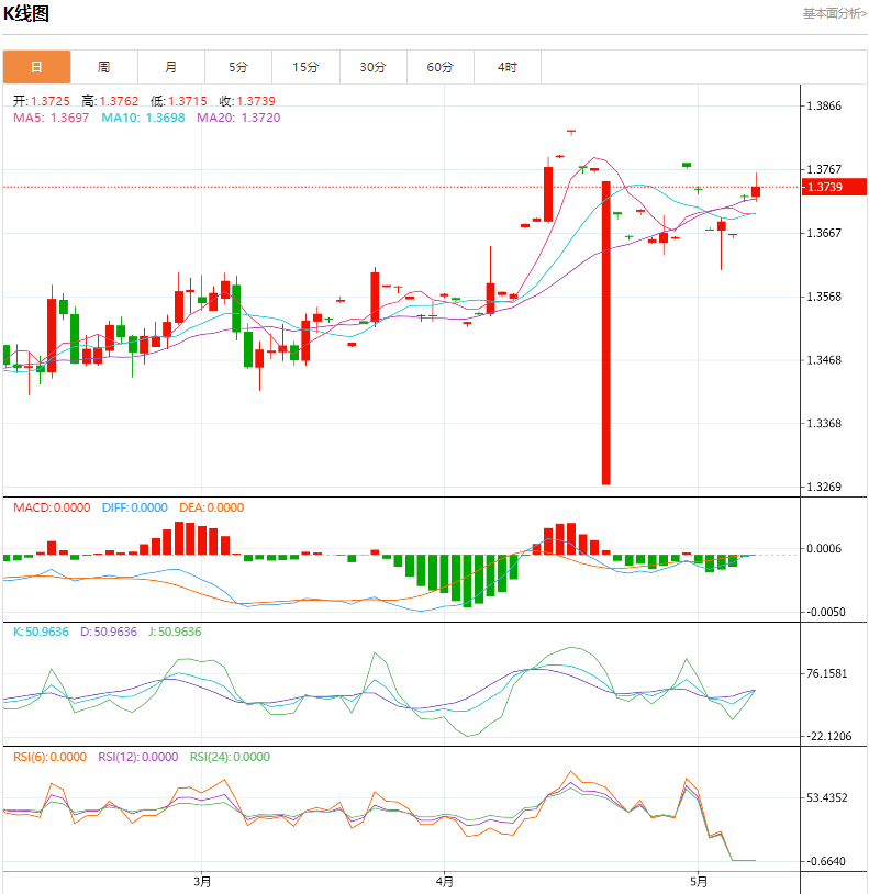 周三亚盘,美元/加元上涨0.13%,交投于1.3743附近,加元普遍走软,但由于加元市场对加拿大Ivy采购经理人指数(I)数据好于预期不屑一顾,因此接近近期技术水平。市场正等待美联储(Fd)政策制定者的声音,因为投资者普遍关注美联储的降息前景。 市场基本面分析 加拿大4月经季节性调整的艾维采购经理人指数(IvyI)