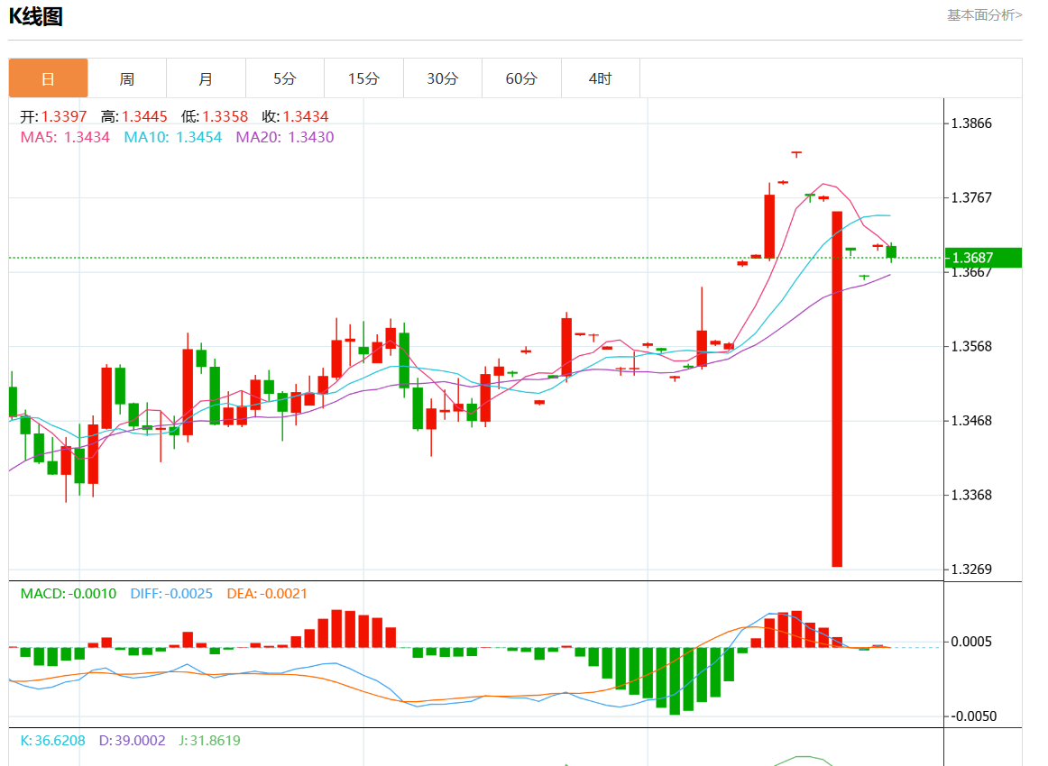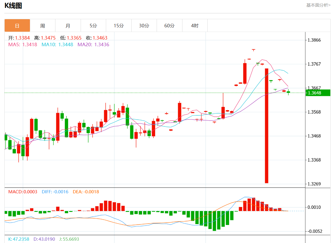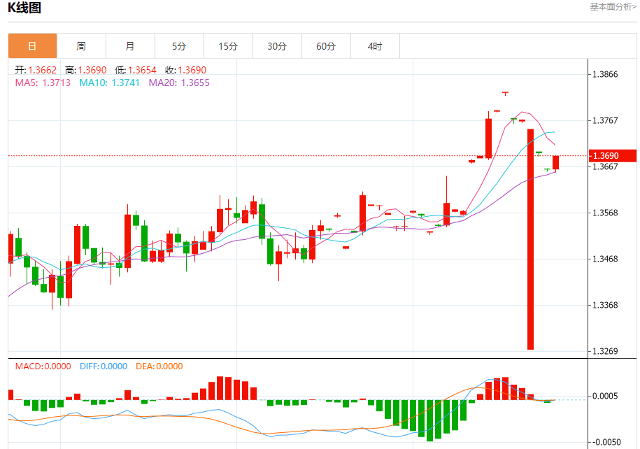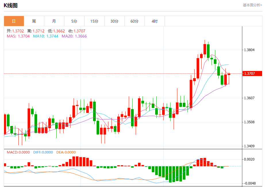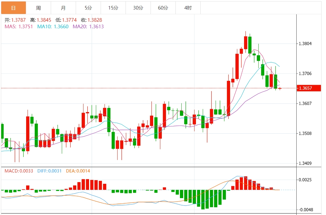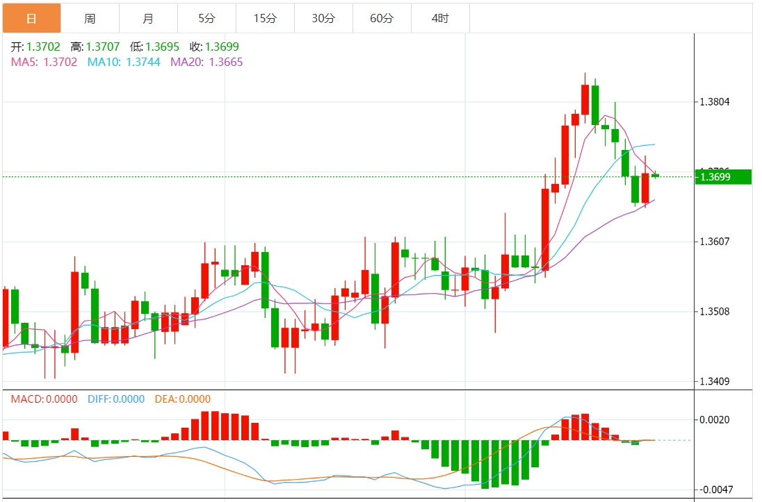 周三盘中,美元/加元报1.3677,涨幅0.11%。 今日分析:在1.3560之上,看涨,目标价位为1.3900,然后为1.4030。 技术点评:RI技术指标运行趋势复杂,倾向于上涨。 支撑位:1.41751.40301.3900 阻力位:1.35601.33501.3280 (亚汇网编辑:静香)