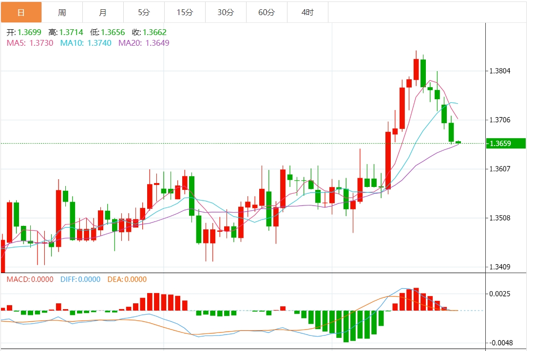 周五亚盘,美元/加元走低,现报1.3649附近,日内下跌0.05%。美元(UD)跌至105.00附近的两周低点,给该货币对带来了一些抛售压力。投资者现在把注意力转移到周五晚些时候公布的美国个人消费支出(C)价格指数数据上。 加拿大零售销售数据疲软引发降息猜测 周三加拿大零售销售数据疲软引发了对加拿大央行(BOC)可能在6