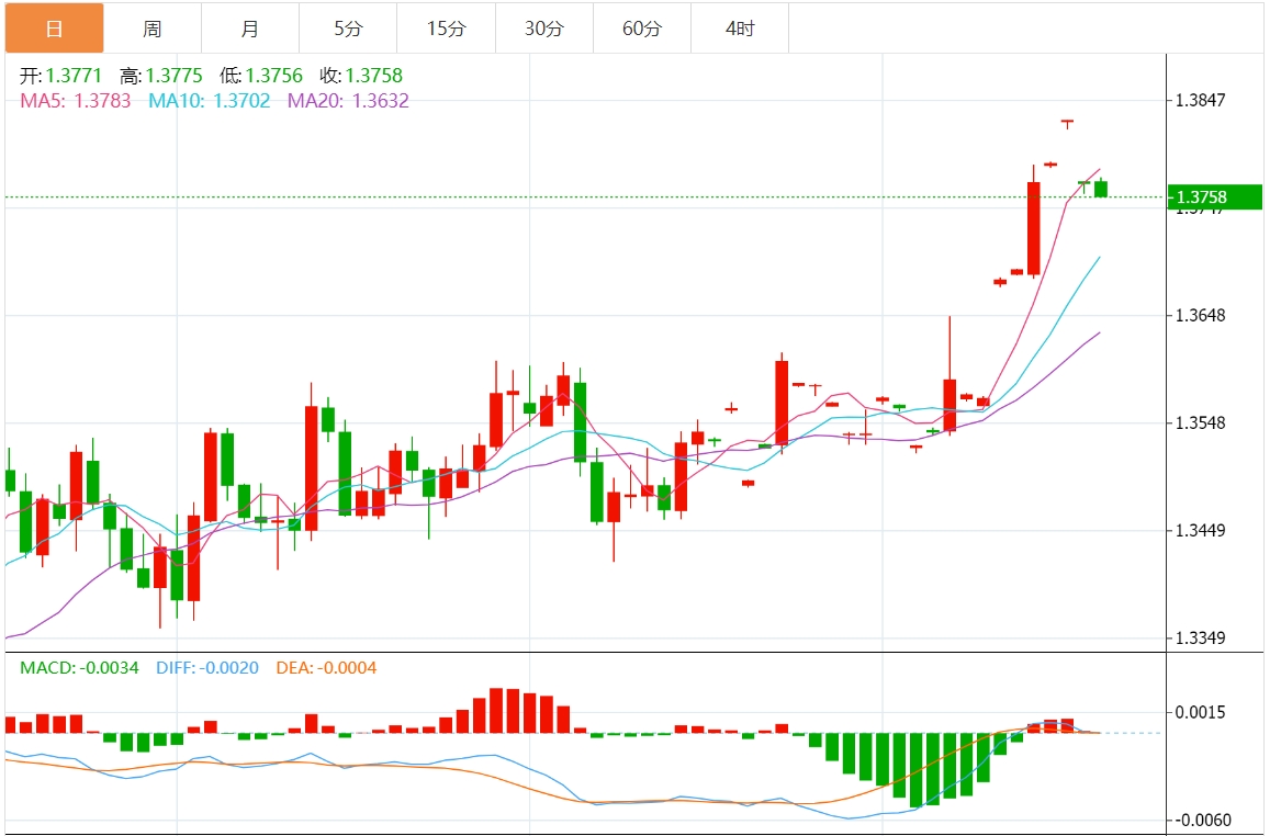 周四亚盘,美元/加元震荡下行,现报1.3758附近。加元(CAD)周三走高,结束了连续五天的抛售,导致加元下跌1.7%。随着美国国债收益率从年初至今的高点回落,美元正在全面下跌。这给遭受重创的加元提供了一些喘息的机会,加元一直在不利的基本面背景下苦苦挣扎。 市场基本面分析 在当前背景下,加元的上行尝试可能是