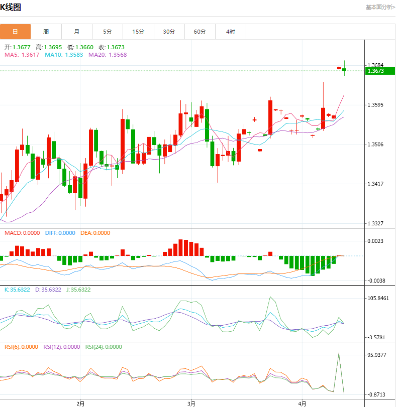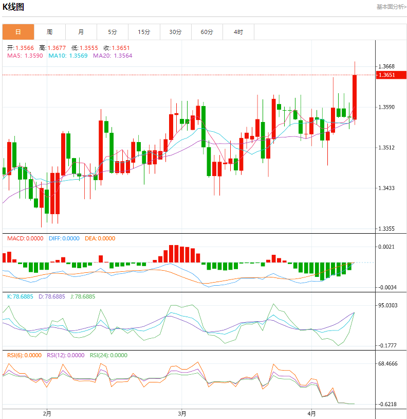 周四亚盘,美元/加元盘中巩固了1.3650上方的涨幅。该货币对的上涨受到美国通胀的支持,美国3月份的通胀高于预期,将美元推高至105.30的年度高点。投资者将从周四晚些时候公布的美国生产者价格指数(I)中获得更多线索。整体I和核心I数据预计分别同比增长2.2%和2.3%。 加拿大央行维持利率不变 周四,加拿大央行(BoC)